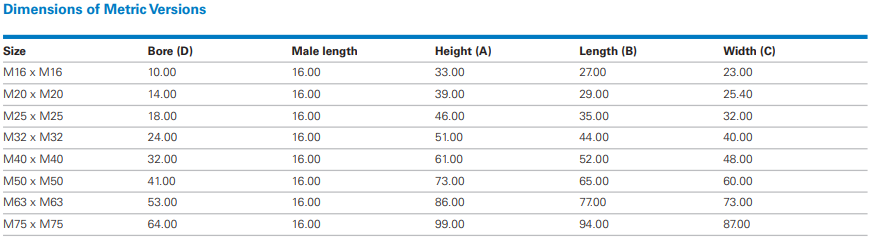 • Maintains Ex certification while matching threadforms