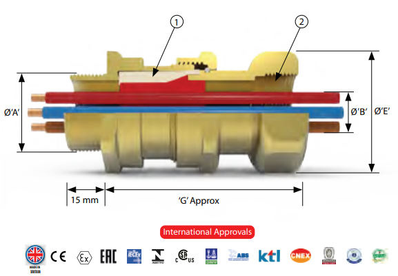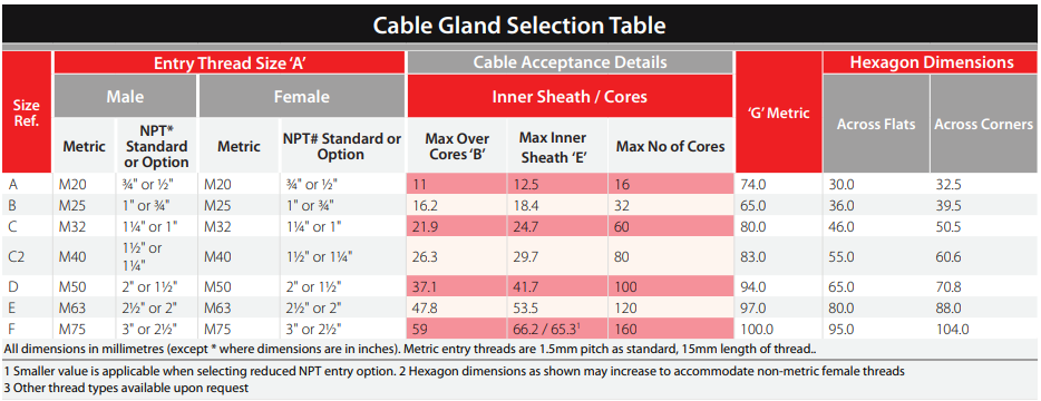 - Fully inspectable barrier seal provides an Exd seal between the individual cable cores
