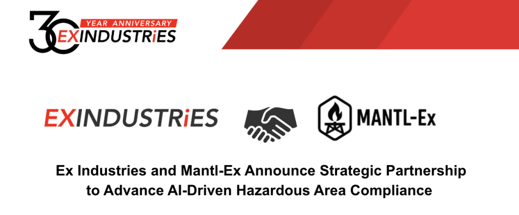 Ex Industries and Mantl‑Ex today announced a strategic collaboration designed to transform hazardous area inspection, compliance, and asset integrity management through the integration of advanced AI-driven inspection software and world-class hazardous area electrical products.